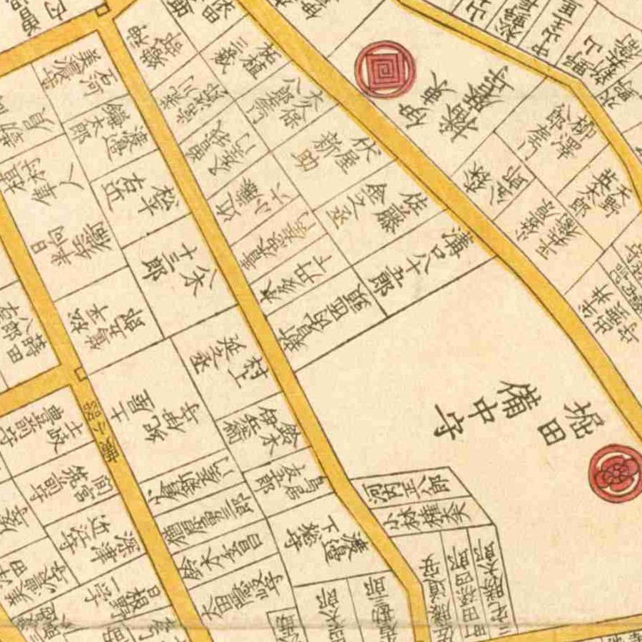 『江戸切絵図』鉄砲洲/文久元年より抜粋、「岩瀬一兵エ」表記区画を忠世の屋敷地と推定。岩瀬忠震は養子。家禄は800石 書院番組頭から先手弓頭へ昇進 役職通称遍歴 …