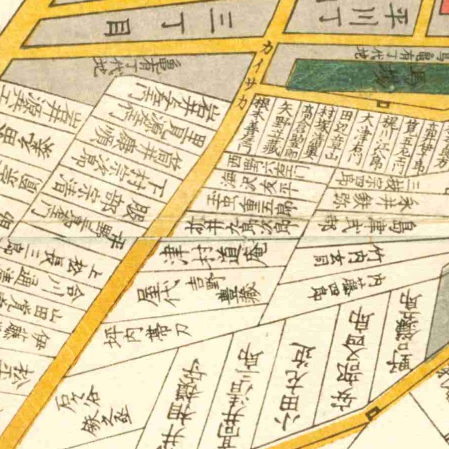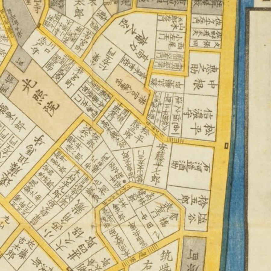 『江戸切絵図』深川/嘉永5年(国会図書館蔵)より抜粋、「長屋新五郎」表記区画を景福の屋敷地と推定。家禄は400俵 本所舟蔵後に屋敷を構える小納戸 役職通称遍歴 …