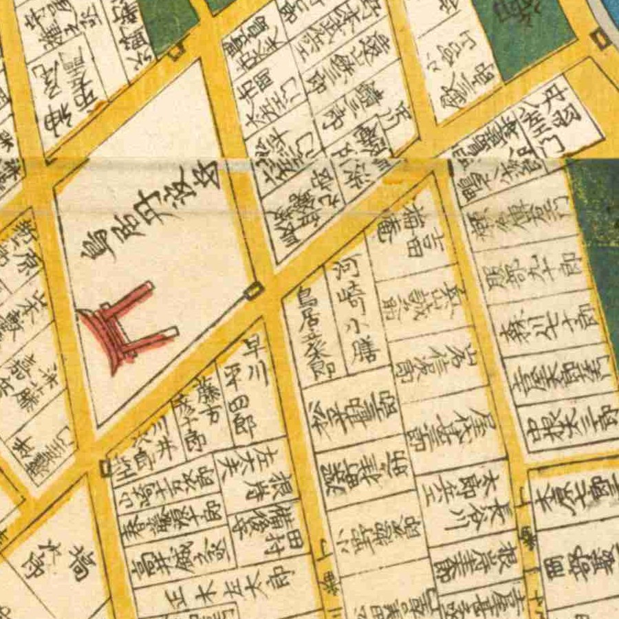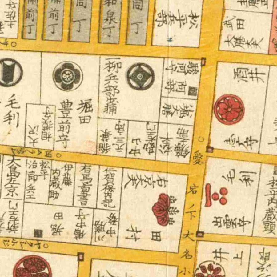 『江戸切絵図』小川町/慶応元年より抜粋、「松平友三郎」表記区画を庸理の屋敷地と推定。形原松平家。家禄は2000俵 神田御門外に屋敷を構える使番 役職通称遍歴 和…