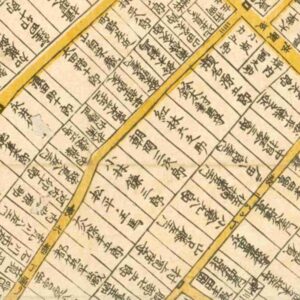 『江戸切絵図』番町/嘉永3年より抜粋、「大久保右近将監」表記区画を忠寛の屋敷地と推定。家禄は500石。下総国香取郡に知行地を有する