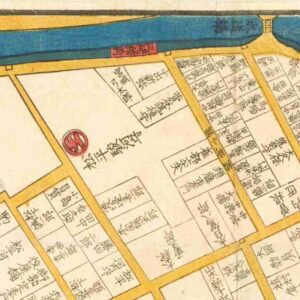『江戸切絵図』赤坂/万延2年より抜粋、「勝麟太郎」表記区画を義邦の屋敷地と推定。長崎海軍伝習所1~3期生(安政2~4年)。家禄は100俵。男谷信友(男谷精一郎)は従兄弟