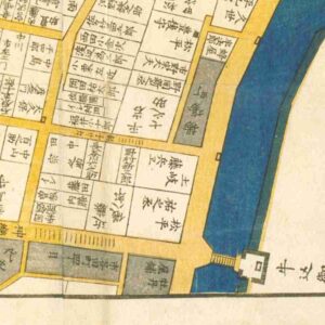 『江戸切絵図』小石川/安政4年より抜粋、「高橋連之助」表記区画を政晃の養父の屋敷地と推定。家禄は100俵→300俵