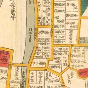 『江戸切絵図』大名小路/嘉永2年より抜粋、「夏目左近将監」表記区画を信明の屋敷地と推定。家禄は732石→2000石。同区画は文久3年の『江戸切絵図』においては「御勘定奉行 一色山城守」(一色直温)表記となっている