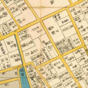 『江戸切絵図』外桜田/嘉永3年より抜粋、「松平鑄之亟」表記区画を忠凱の屋敷地と推定。五井松平家。家禄は5500石。遠江国長上郡、豊田郡、引佐郡、周知郡に知行地を有する
