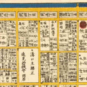 『江戸切絵図』下谷/嘉永4年より抜粋、「松平采女」表記区画を忠受の屋敷地と推定。久松松平家。家禄は5000石。信濃国小県郡、佐久郡に知行地を有する