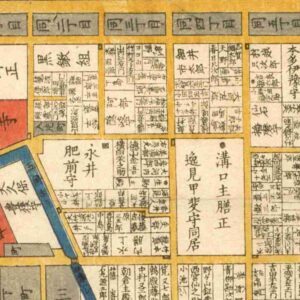 『江戸切絵図』愛宕下/万延2年より抜粋、「水野山城守」表記区画を忠勧の屋敷地と推定。家禄は5000石。三河国碧海郡に知行地を有する