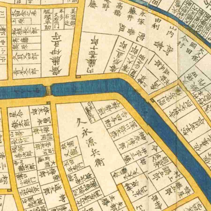 『江戸切絵図』小日向/嘉永5年より抜粋、「上野新三郎」表記区画を景信の屋敷地と推定。家禄は800俵