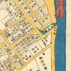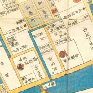 『江戸切絵図』市谷/安政4年より抜粋、「大久保甚四郎」表記区画を忠富の屋敷地と推定。家禄は1600石
