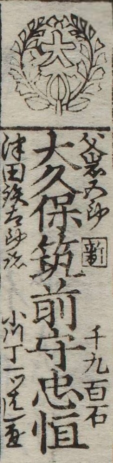 『大成武鑑』(出雲寺/嘉永4年)小普請組支配より抜粋、家紋は大久保藤