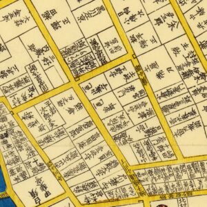 『江戸切絵図』番町/嘉永3年より抜粋、「安倍式部」表記区画を信乾の屋敷地と推定。家禄は1000石