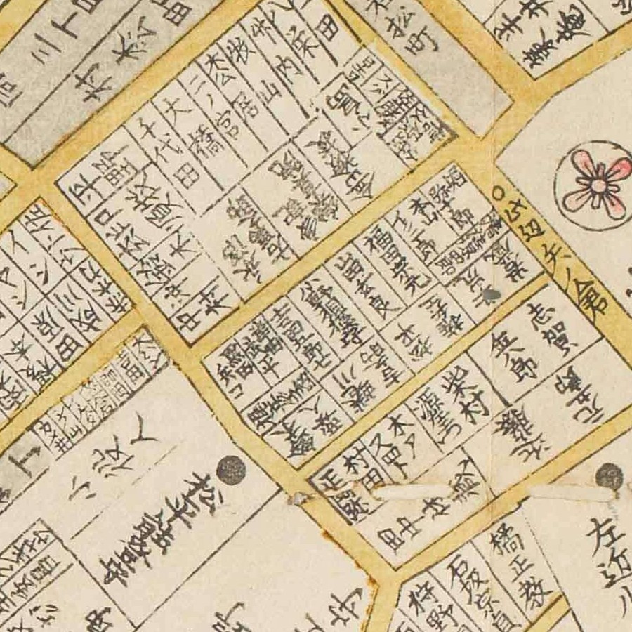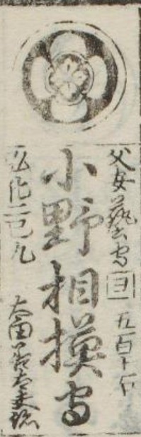 『江戸切絵図』日本橋/嘉永4年(国文学研究資料館蔵)より抜粋、「小野相模守」表記区画を一興の屋敷地と推定。家禄は510石