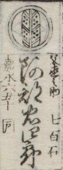 『大成武鑑』(出雲寺/万延元年)二丸留守居より抜粋、家紋は丸に一つ鷹の羽