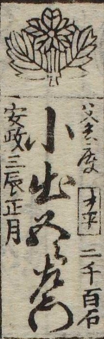 『大成武鑑』(出雲寺/文久3年)使番より抜粋、家紋は抱き葉に山桜か