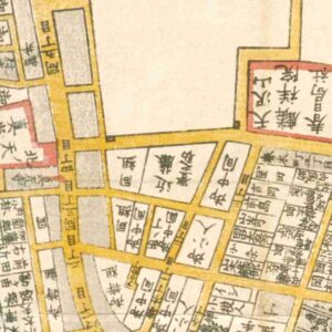 『江戸切絵図』本郷/嘉永6年(国会図書館蔵)より抜粋、「川副勝三郎」表記区画を頼紀の屋敷地と推定。家禄は1550石