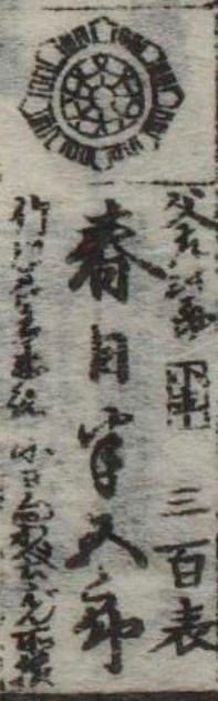 『江戸切絵図』小日向/万延元年より抜粋、「春日半五郎」表記区画を顕達の屋敷地と推定。家禄は300俵