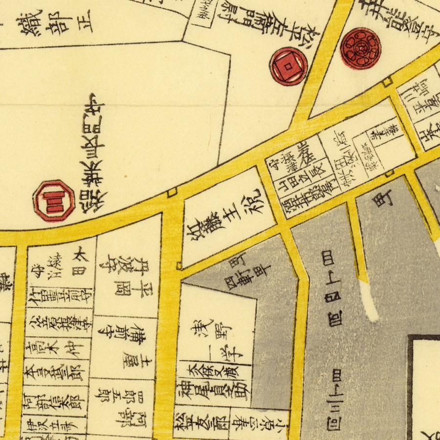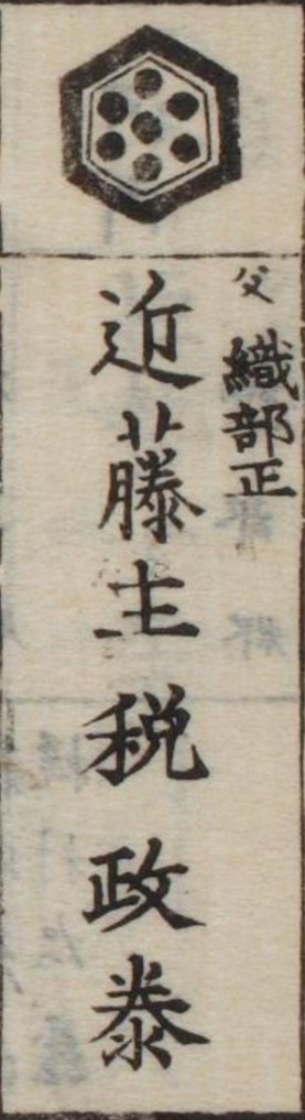 近藤政泰 2025年10月3日 か行 『江戸切絵図』小川町/安政7年(国土地理院蔵)より抜粋、「近藤主税」表記区画を政泰の屋敷地と推定。実際には安政6年12月に家督を養子の利三郎に譲っているが、『江戸切絵図』は更新漏れと推定。家禄は4300石。近藤政賢は養父。信濃国伊那郡に知行地を有する 信濃に知行地を有する寄合 役職通称遍歴 和暦西暦役職通称備考嘉永7年3月27日1854年4月24日寄合二郎家督安政3年寄合主税 屋敷地推定 武鑑記載家紋 『昇栄武鑑』(出雲寺/安政3年)より抜粋、家紋は亀甲に七曜
