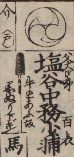 『大成武鑑』(出雲寺/安政4年)小納戸頭取より抜粋、家紋は左三つ巴
