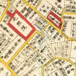 『江戸切絵図』外桜田/嘉永3年より抜粋、「杉浦八郎五郎」表記区画を勝用の屋敷地と推定。家禄は500石