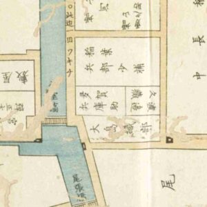 『江戸切絵図』深川/安政2年より抜粋、「土屋求馬」表記区画を常直の屋敷地と推定。家禄は3000俵。常陸土浦土屋家の内分分知