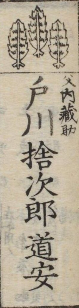 『江戸切絵図』鉄砲洲/文久元年より抜粋、「戸川捨二郎」表記区画を道安の屋敷地と推定。家禄は3000石。備中国都宇郡に知行地を有する