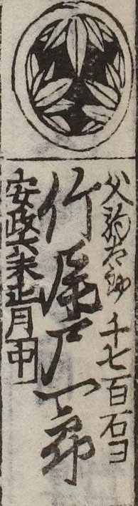 『大成武鑑』(出雲寺/安政6年)使番より抜粋、家紋は丸に十五枚笹