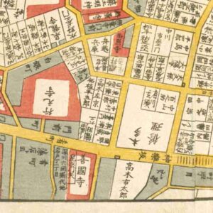 『江戸切絵図』本郷/万延2年より抜粋、「内藤加賀守」表記区画を忠谷の屋敷地と推定。家禄は5000石。近江国甲賀郡に知行地を有する