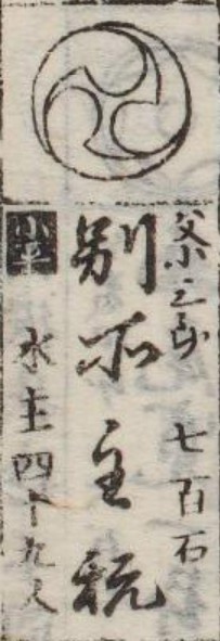 『安政武鑑』(須原屋/安政7年)舟手より抜粋、家紋は左三つ巴
