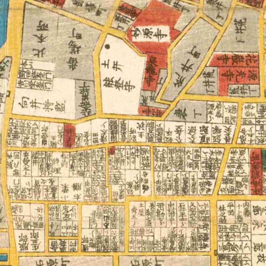 『江戸切絵図』本所/文久3年より抜粋、「別所主税」表記区画を民治の屋敷地と推定。家禄は700石