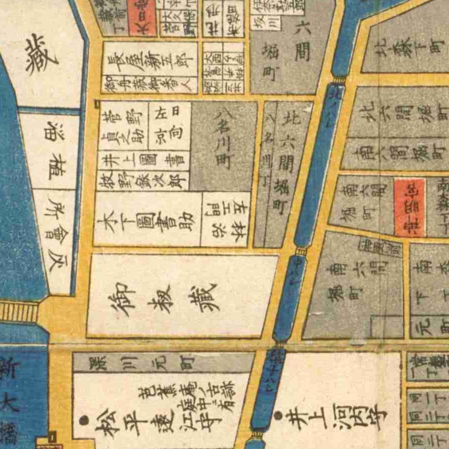『江戸切絵図』深川/安政2年より抜粋、「林治左エ門」表記区画を直方の屋敷地と推定。家禄は1000石