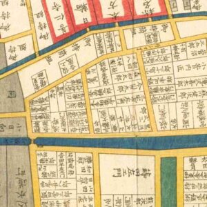『江戸切絵図』深川/文久2年より抜粋、「浅野藤沢」表記区画を次謙の屋敷地と推定。家禄は1500石。安政2年の『江戸切絵図』では同区画は「浅野一学」表記となっている。このことから文久2年の屋敷地に併記される「浅野」は次謙の義兄である浅野氏祐を示していると推定。安政5年の『江戸切絵図』の同区画の表記も「浅野藤沢」だが、この「藤沢」は次謙の養父である「藤沢九太夫」であり、この頃から藤沢家は浅野家の屋敷地内を居所としていた可能性がある。ただし、次謙は藤沢家の養子となる文久2年以前は実父の幕府奥医師・桂川家の屋敷に部屋住していたと推定。
