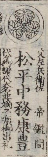 『大成武鑑』(出雲寺/嘉永7年)交代寄合より抜粋、家紋は三つ葉葵