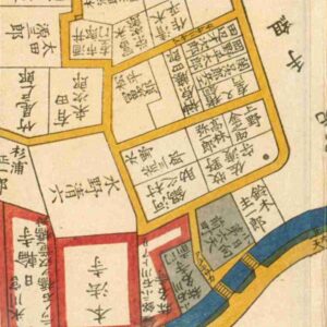 『江戸切絵図』赤坂/嘉永3年より抜粋、「森山与一郎」表記区画を盛広の屋敷地と推定。家禄は400石