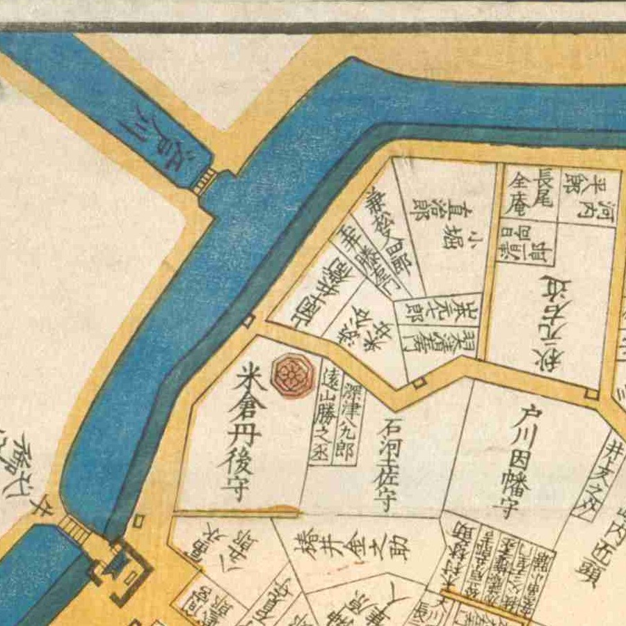 『江戸切絵図』小川町/嘉永3年より抜粋、「山岡十兵衛」表記区画を景豊の屋敷地と推定。家禄は2000石