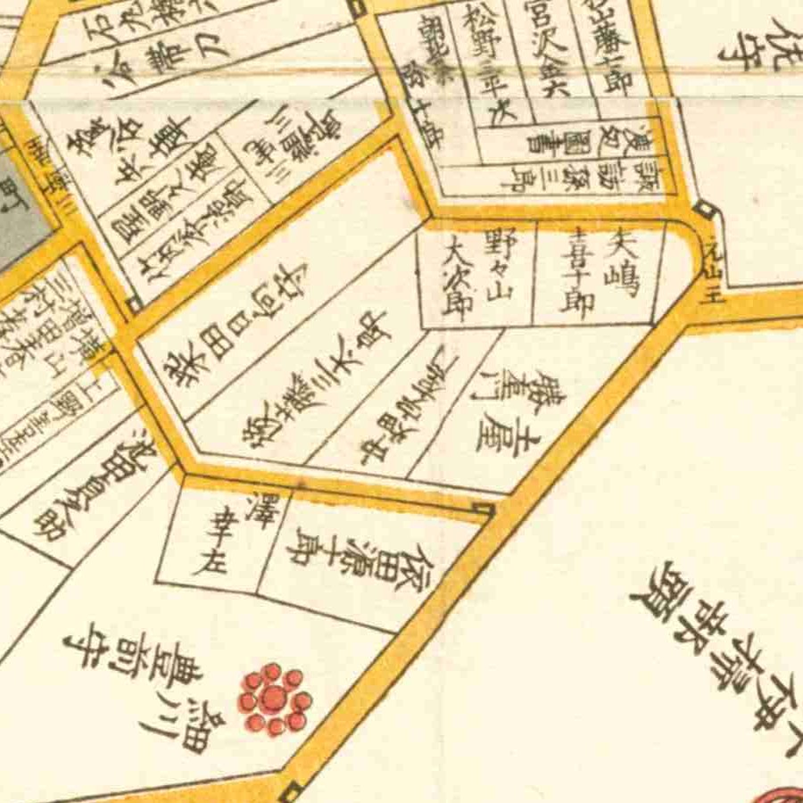 『江戸切絵図』小川町/嘉永3年より抜粋、「小倉新左エ門」表記区画を政行の屋敷地と推定。 書院番組頭から先手鉄砲頭に昇進 役職通称遍歴 和暦 西暦 役職 通称 備…