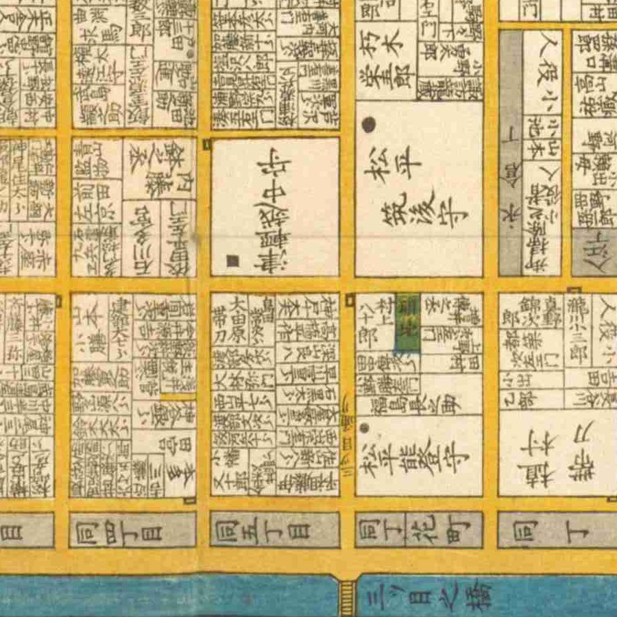 『江戸切絵図』小川町/嘉永2年(近江屋)より抜粋、「玉井藤右エ門」表記区画を佑徳の屋敷地と推定。家禄は200俵 浅草蔵奉行から鎗奉行まで昇進 役職通称遍歴 和暦…