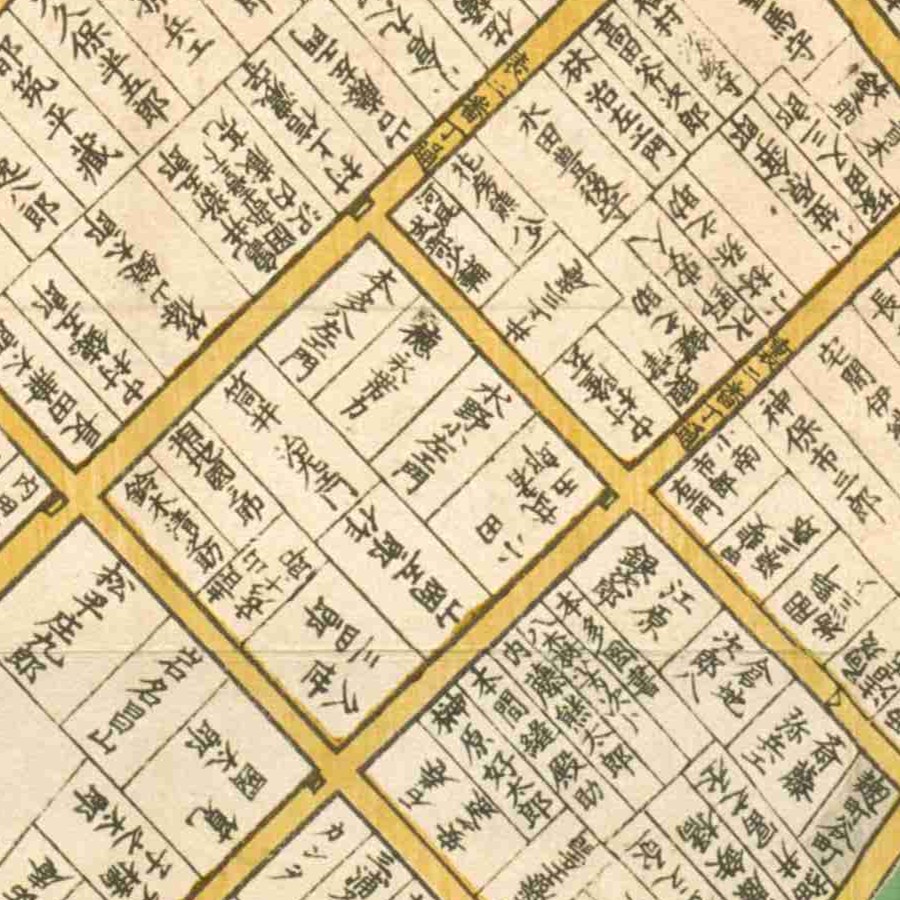『江戸切絵図』深川/文久2年より抜粋、「村越只次郎」表記区画を成章の屋敷地と推定。家禄は700石 小納戸から先手鉄砲頭に昇進 役職通称遍歴 和暦 西暦 役職 通…