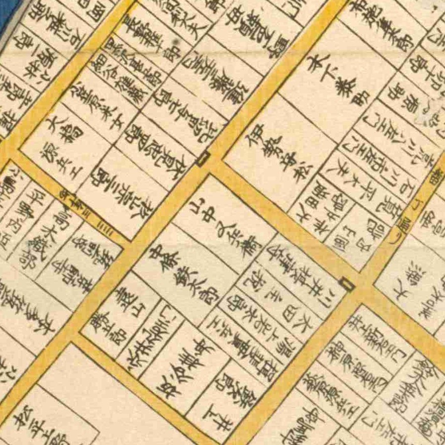 『江戸切絵図』本郷/嘉永2年(近江屋)より抜粋、「山本清兵エ」表記区画を時亮の屋敷地と推定。家禄は150俵 大番組頭から二丸留守居に昇進 役職通称遍歴 和暦 西…