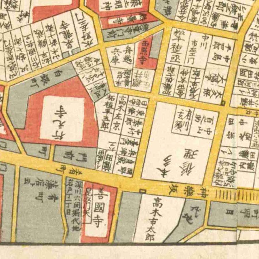 『江戸切絵図』本郷/嘉永2年(近江屋)より抜粋、「高木内蔵頭」表記区画を正方の屋敷地と推定。家禄は300俵 西丸御膳奉行から鎗奉行まで昇進 役職通称遍歴 和暦 …